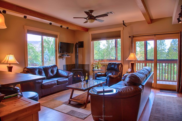 On the ground floor, this spacious suite faces the Twisp River and allows quick access down to the river and common deck. Enjoy the view from your private, screened-in porch.