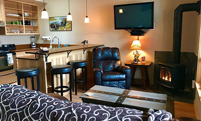 • Living area with big screen tv, gas fireplace, washer/dryer